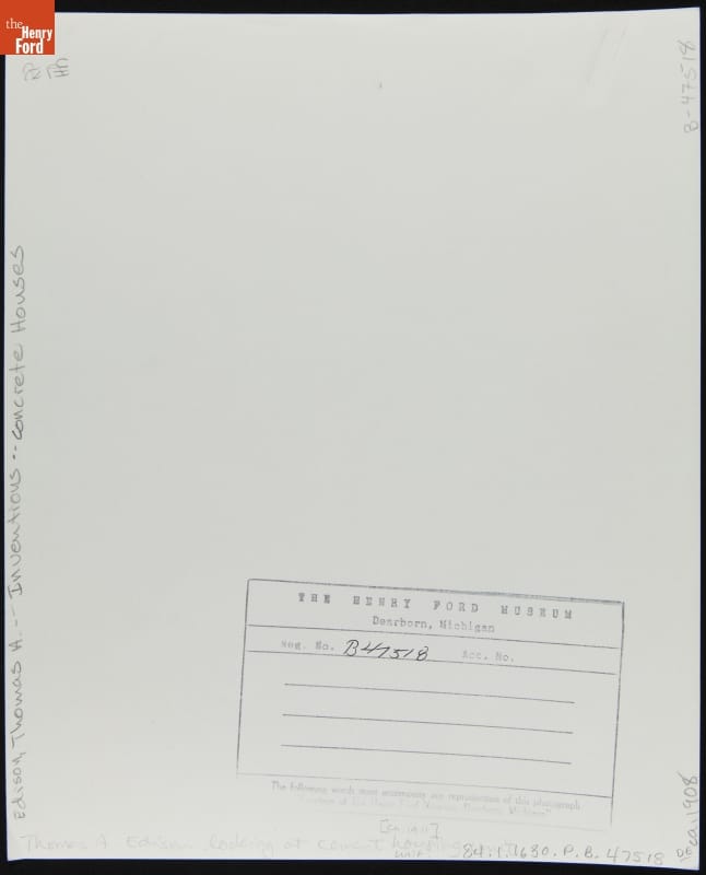 Thomas Edison Looking at a Concrete House Unit, circa 1911