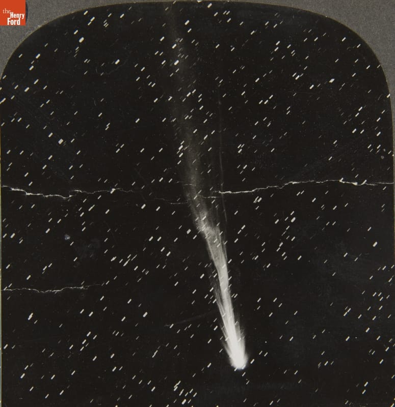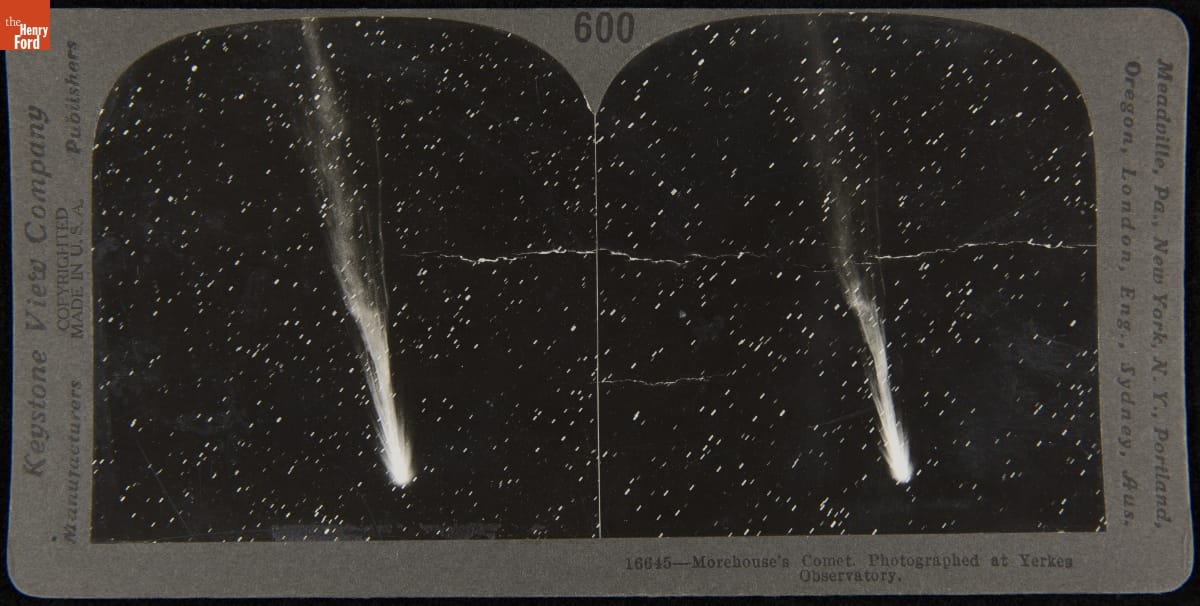 Americans loved stereographs -- millions were made from the mid-1800s through the 1930s. A stereograph consists of two offset photos that appear to have three-dimensional depth when viewed through a stereoscope. These images entertained and educated. Stereographs could transport viewers to distant events, exotic places, and even worlds beyond, like this image of a comet first seen in 1908 and named for astronomer Daniel Morehouse.