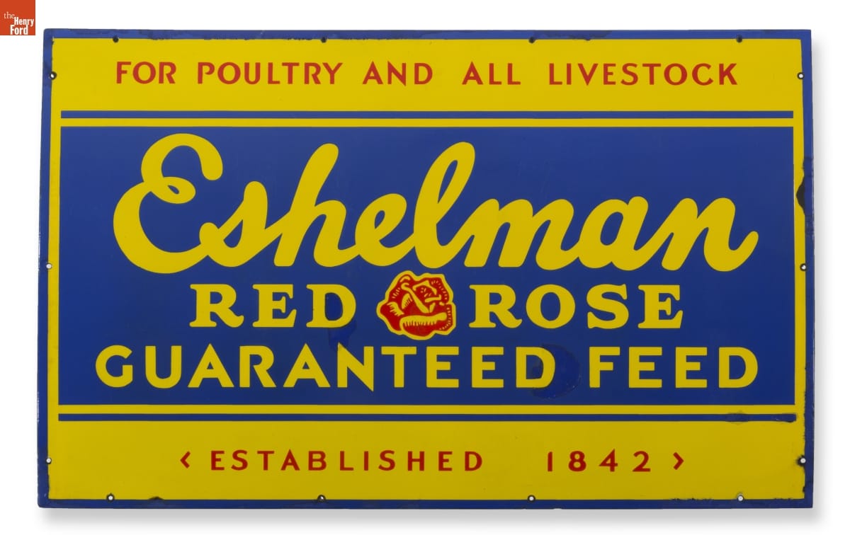 Farm families must feed their livestock as well as themselves. They often need more (and better quality) animal feed than they can produce. Specialized businesses emerged in the nineteenth century to serve that need. Eshelman Feed, distinguished by its "Red Rose" trademark and "guaranteed feed" slogan, was reputedly the oldest animal feed business in the United States, founded in 1842 and in business until 2010.