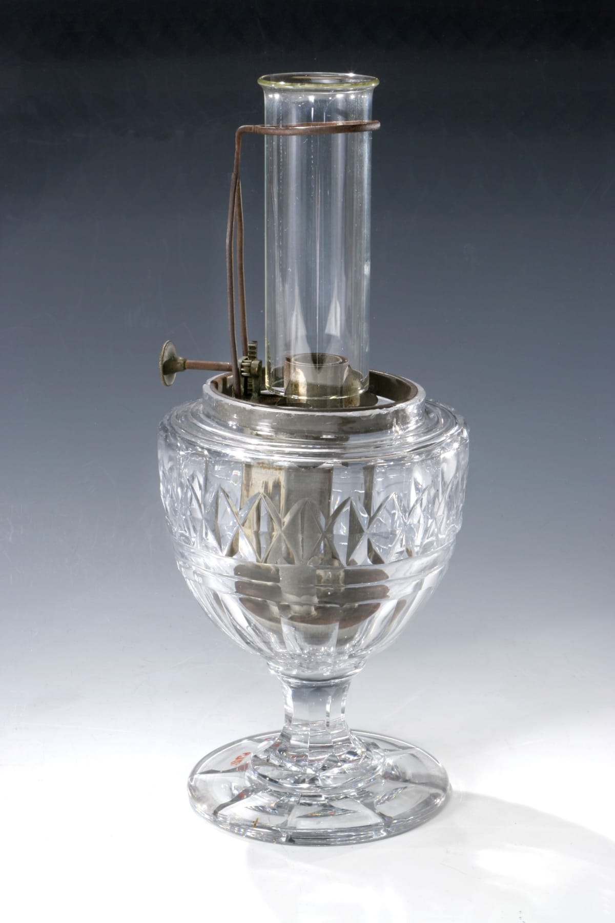 Traditional make-dos are useful and precious objects that broke during their working lives. Their owners felt compelled to restore or repurpose these objects in a variety of ways. This lamp started out as an expensive cut glass sugar bowl, but the base now serves as a reservoir for lamp fuel.
