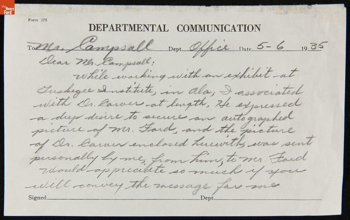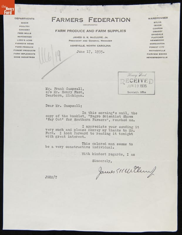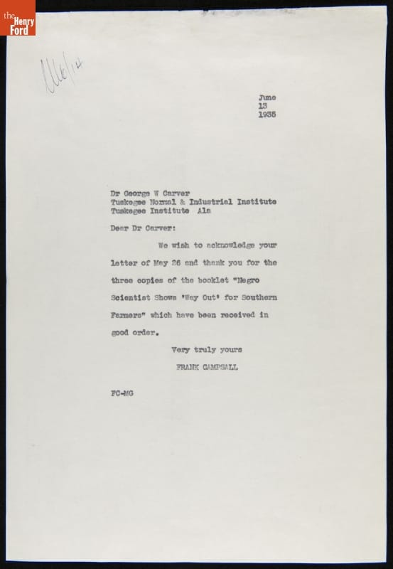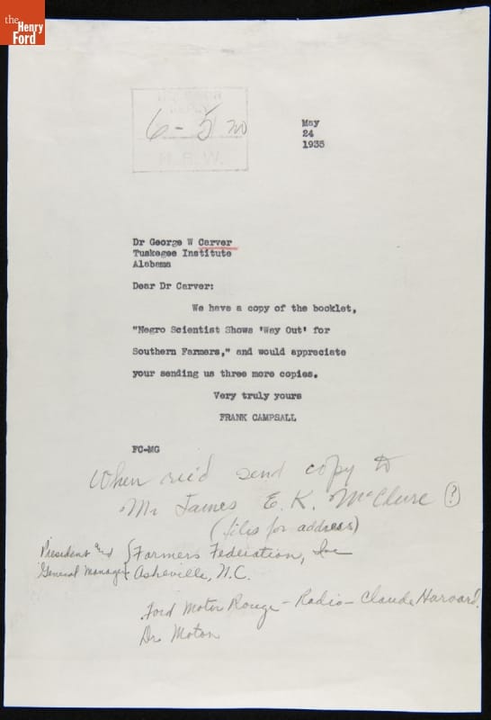 Correspondence between Claude Harvard, Frank Campsall, George Washington Carver and James McClure, May-June 1935