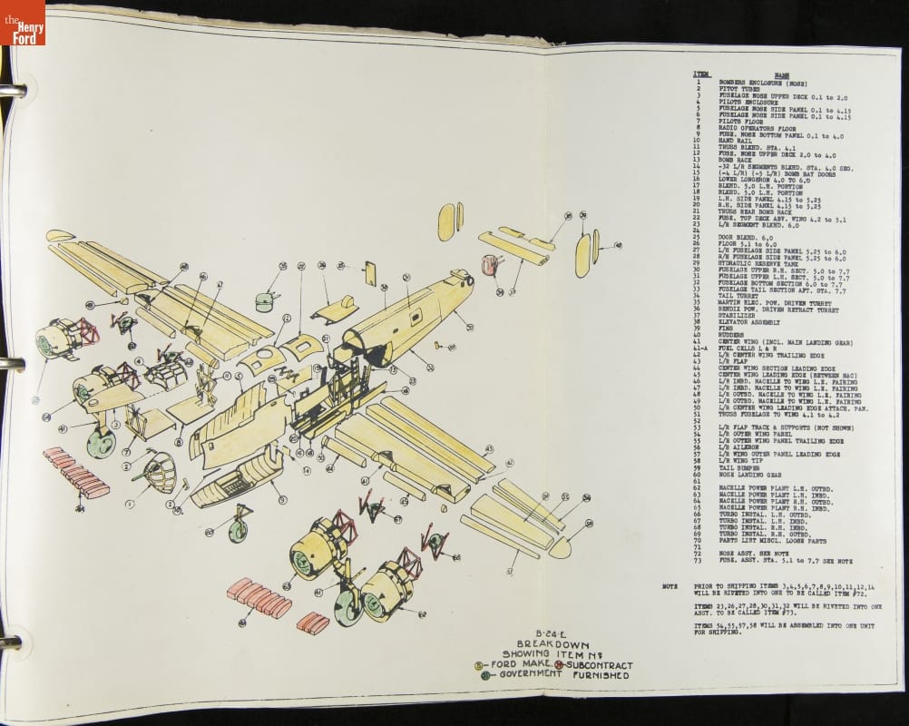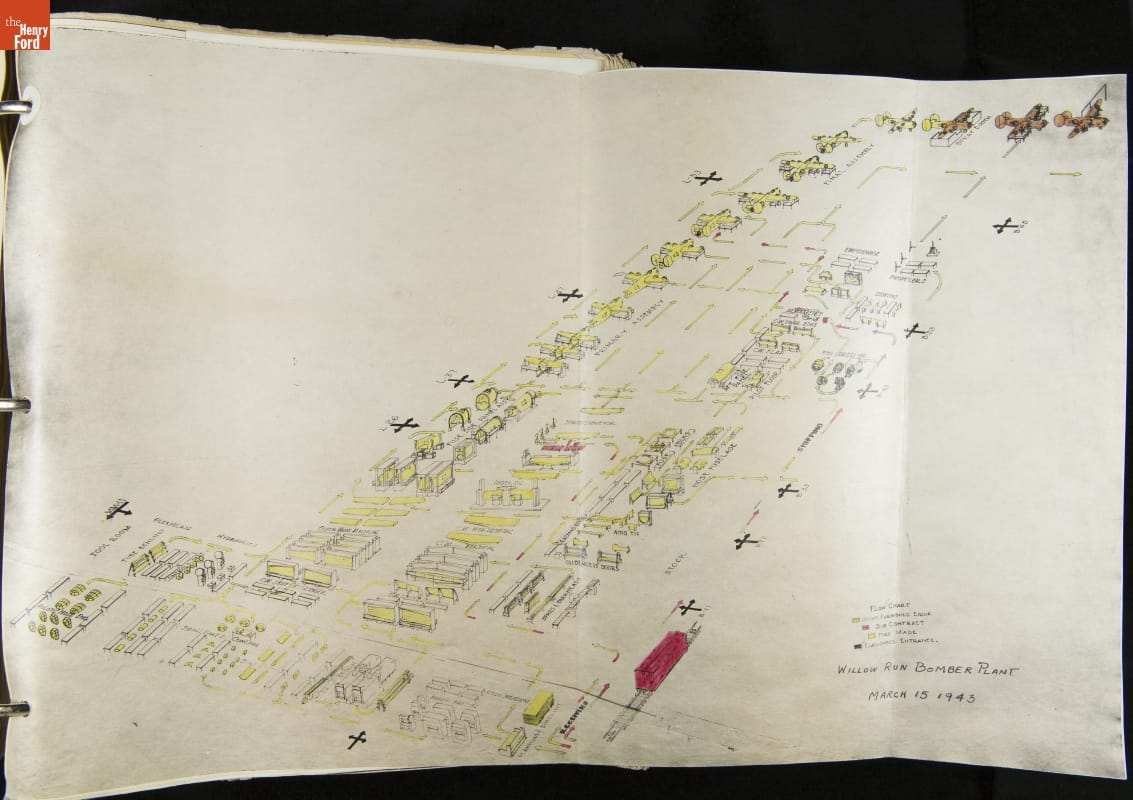 Ford Motor Company built everything from jeeps to generators during World War II, but nothing captured the public's imagination like Ford's B-24 bomber plant at Willow Run, where one new airplane was completed every 63 minutes. This manual documents the carefully planned assembly process that allowed complex bombers to be built using the same mass production techniques Ford pioneered for its automobiles.