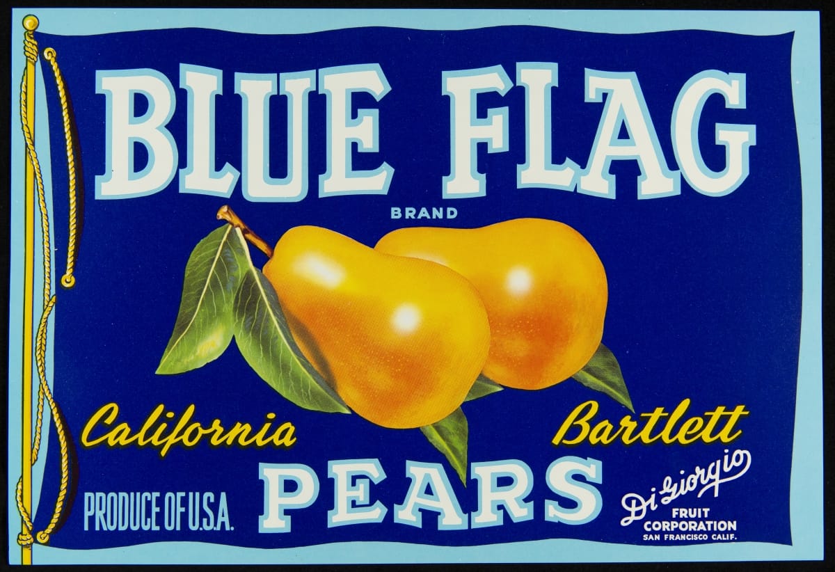 written on front: Blue Flag / Brand / California / Bartlett / Pears / Di Giorgio / Fruit / Corporation / San Francisco, Calif.