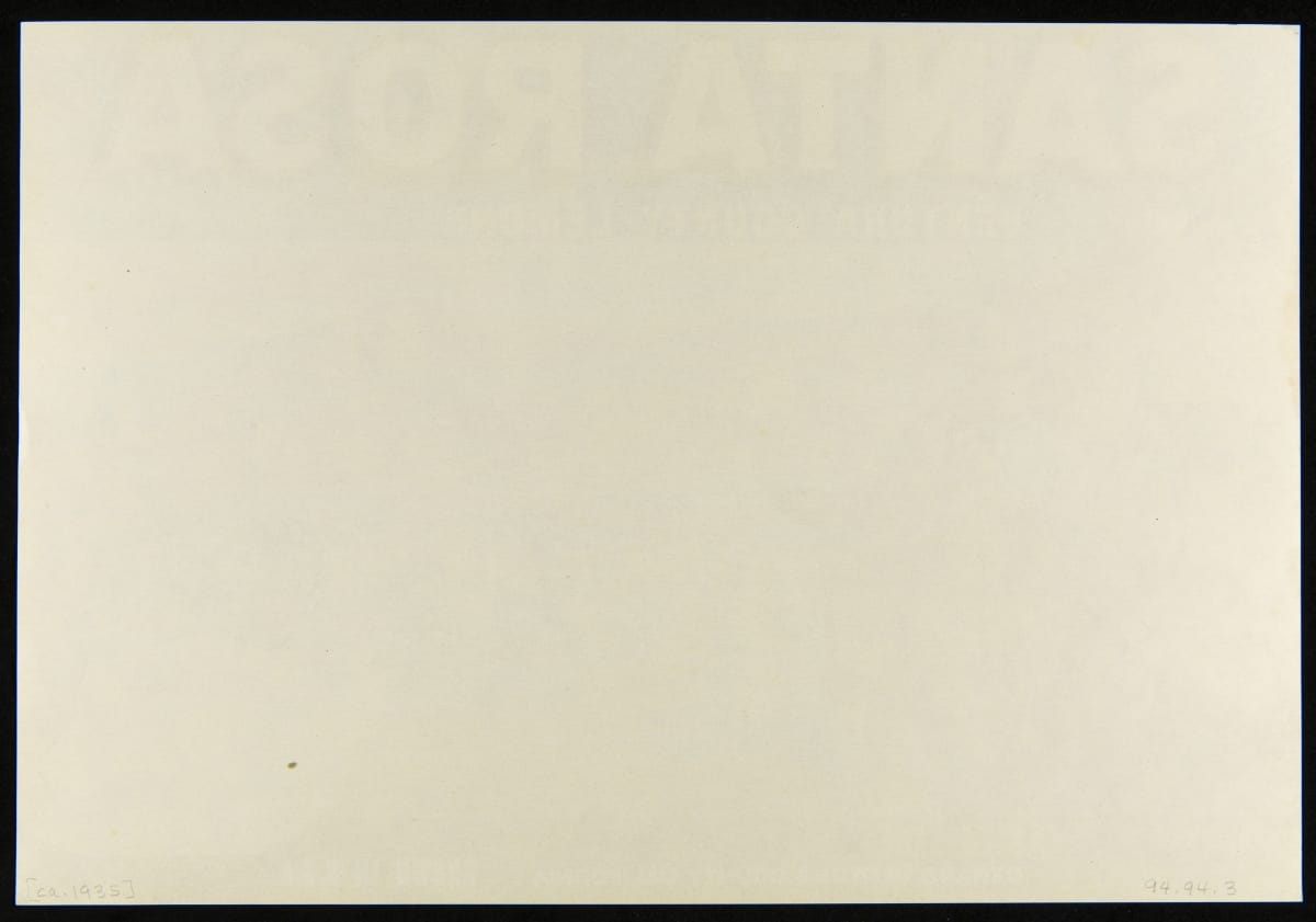 written on front: Santa Rosa Brand / Ventura County Lemons / Packed by / T. M. Reg. U.S. Pat. Off. / Copyright 1927 by Oxnard Citrus Assn. / Oxnard Citrus Assn. / Oxnard ventura county california / Grown in U.S.A. / Sunkist / litho in U.S.A. - Western Litho. Co. Los. Angeles