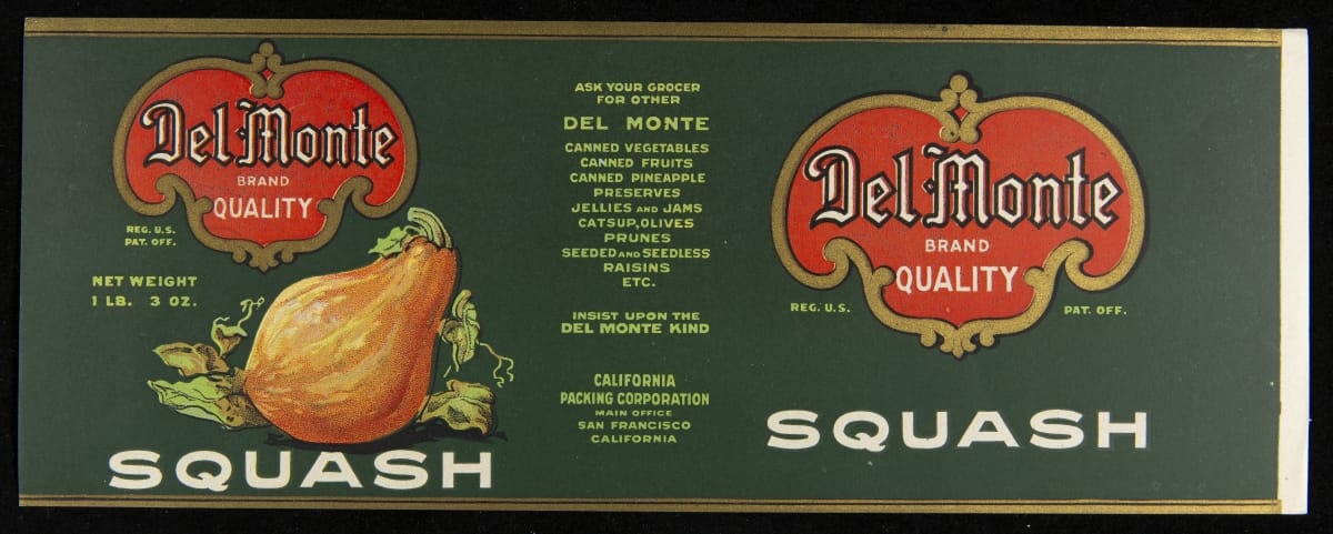 Can Label, "Del Monte Brand Squash," circa 1920