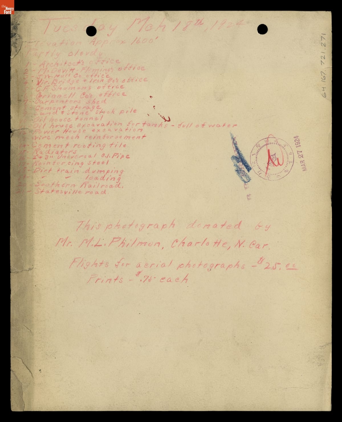Aerial View of Construction Progress, Ford Motor Company Assembly Plant, Charlotte, North Carolina, March 18, 1924