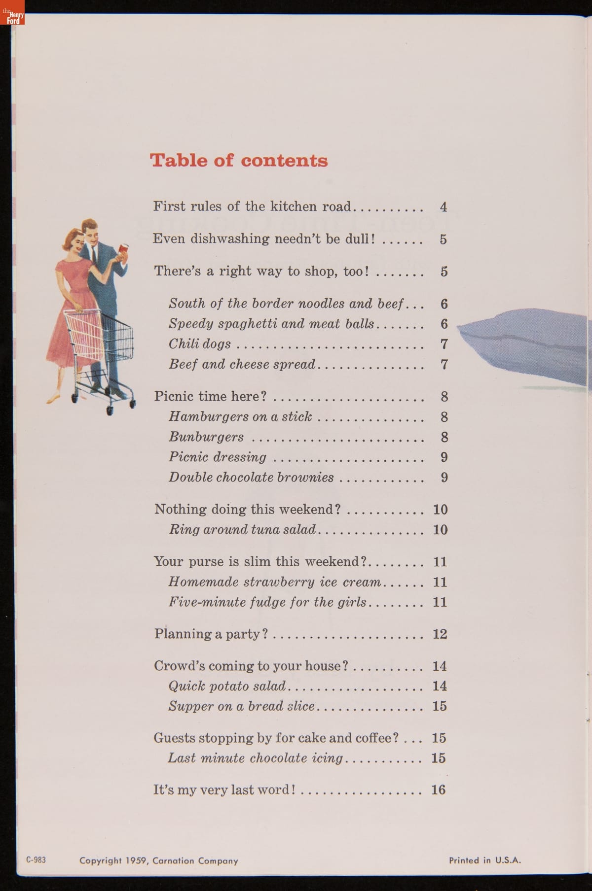Recipe Booklet, "Teen-Time Cooking with Carnation Evaporated Milk," 1959