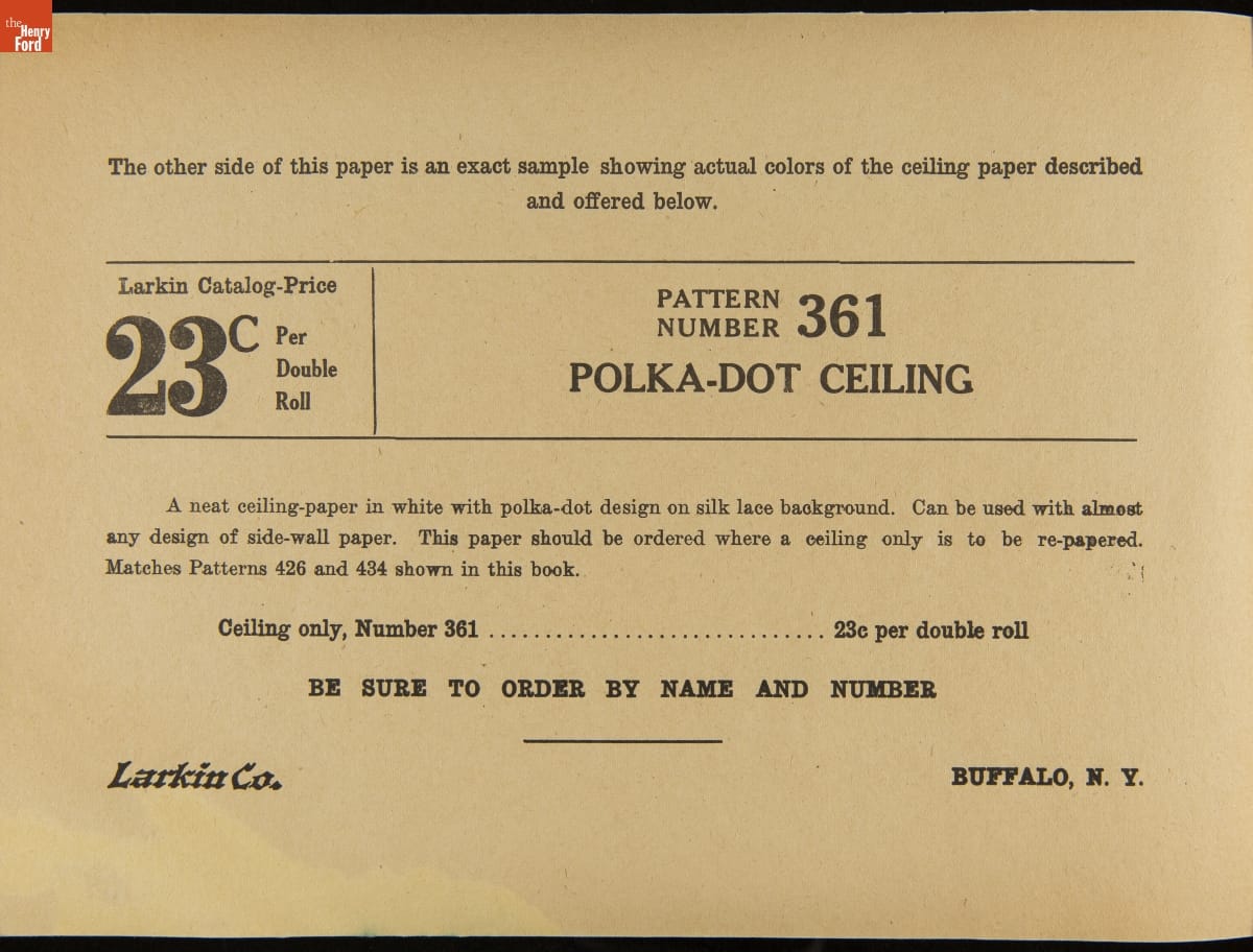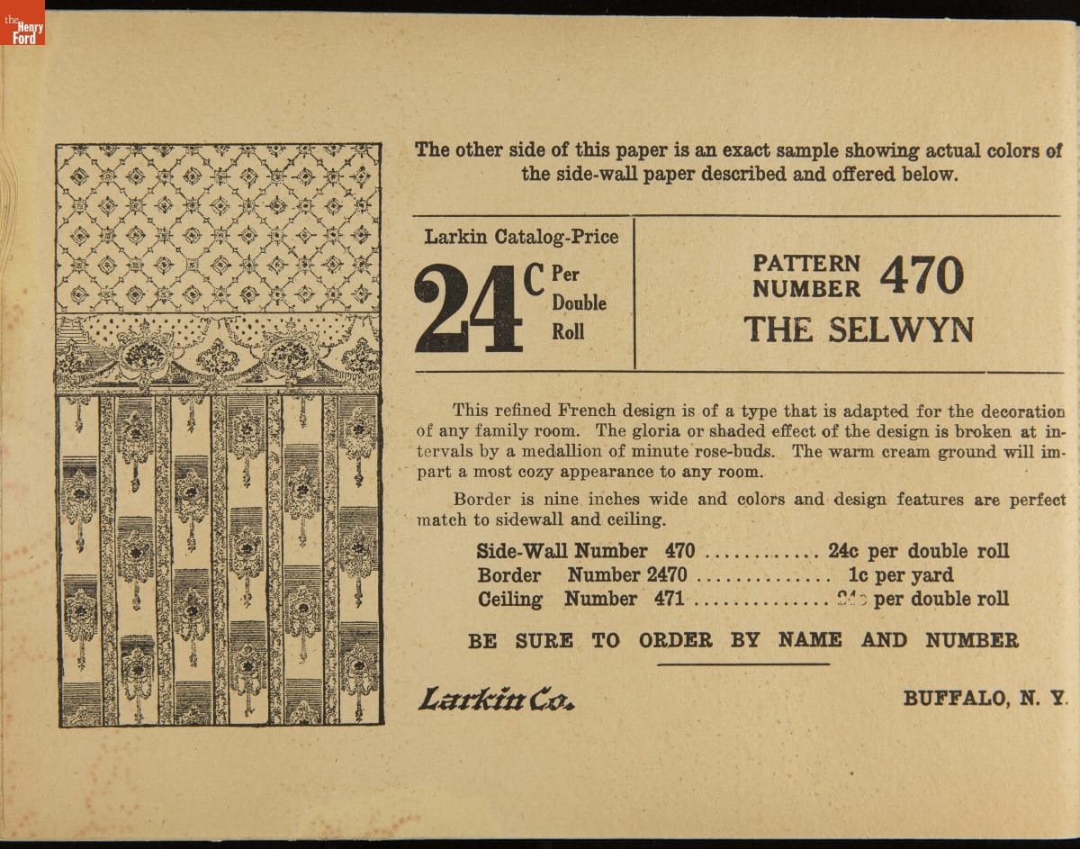 John D. Larkin established a soap manufacturing company in 1875. He hired his brother-in-law, Elbert Hubbard, as a salesman. Hubbard developed "The Larkin Idea," a plan that sold goods directly to consumers through mail-order catalogs and offered incentivizing giveaways. It was a success. By the early 1900s, Larkin's catalogs contained pages of products and even more pages of premiums from which customers could choose.