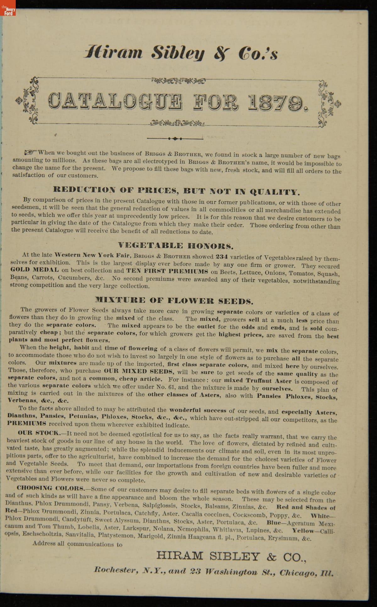Hiram Sibley & Co. Catalogue of Garden, Field and Flower Seeds, 1879