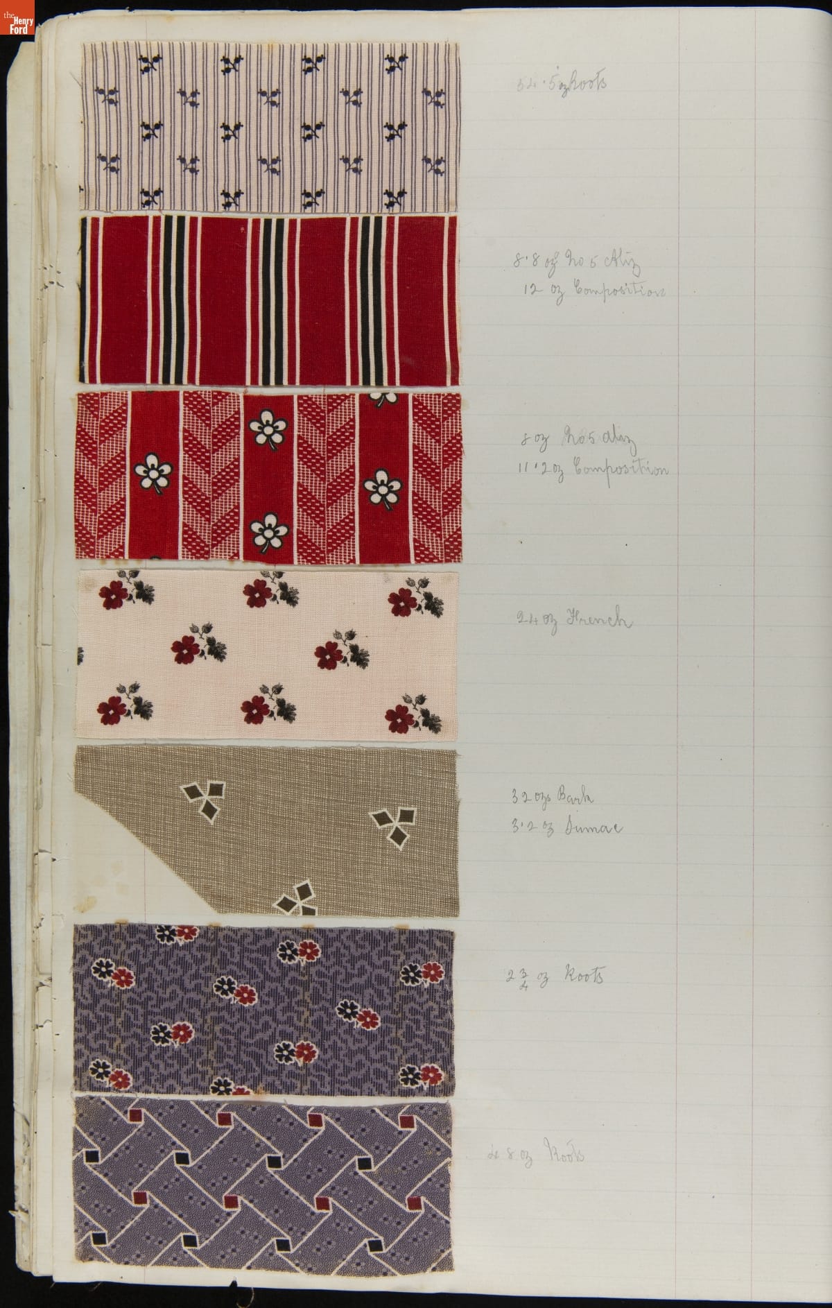 Washington Anderton's Textile Samples Notebook, Cocheco Mfg. Co., November to December 1877