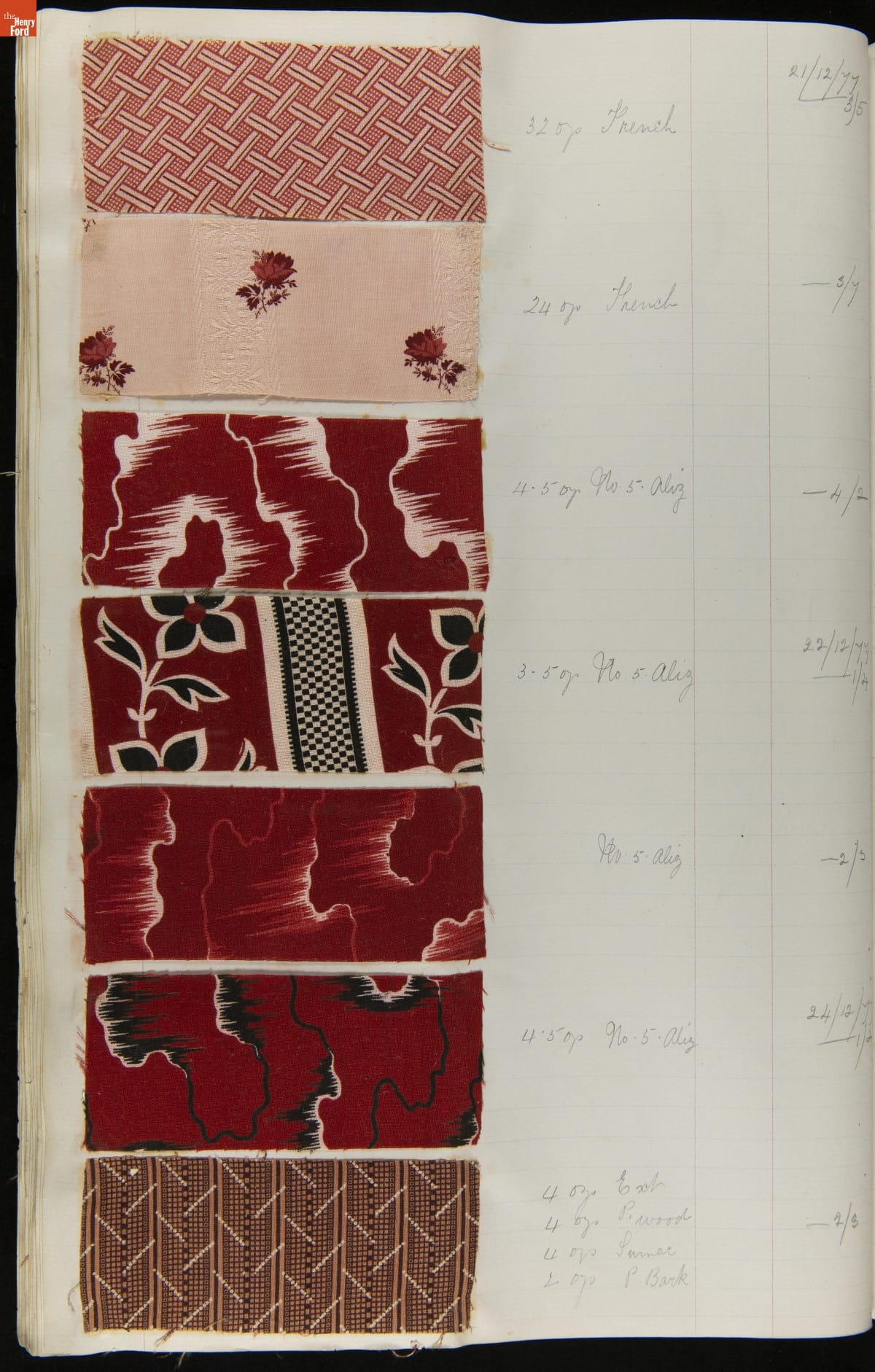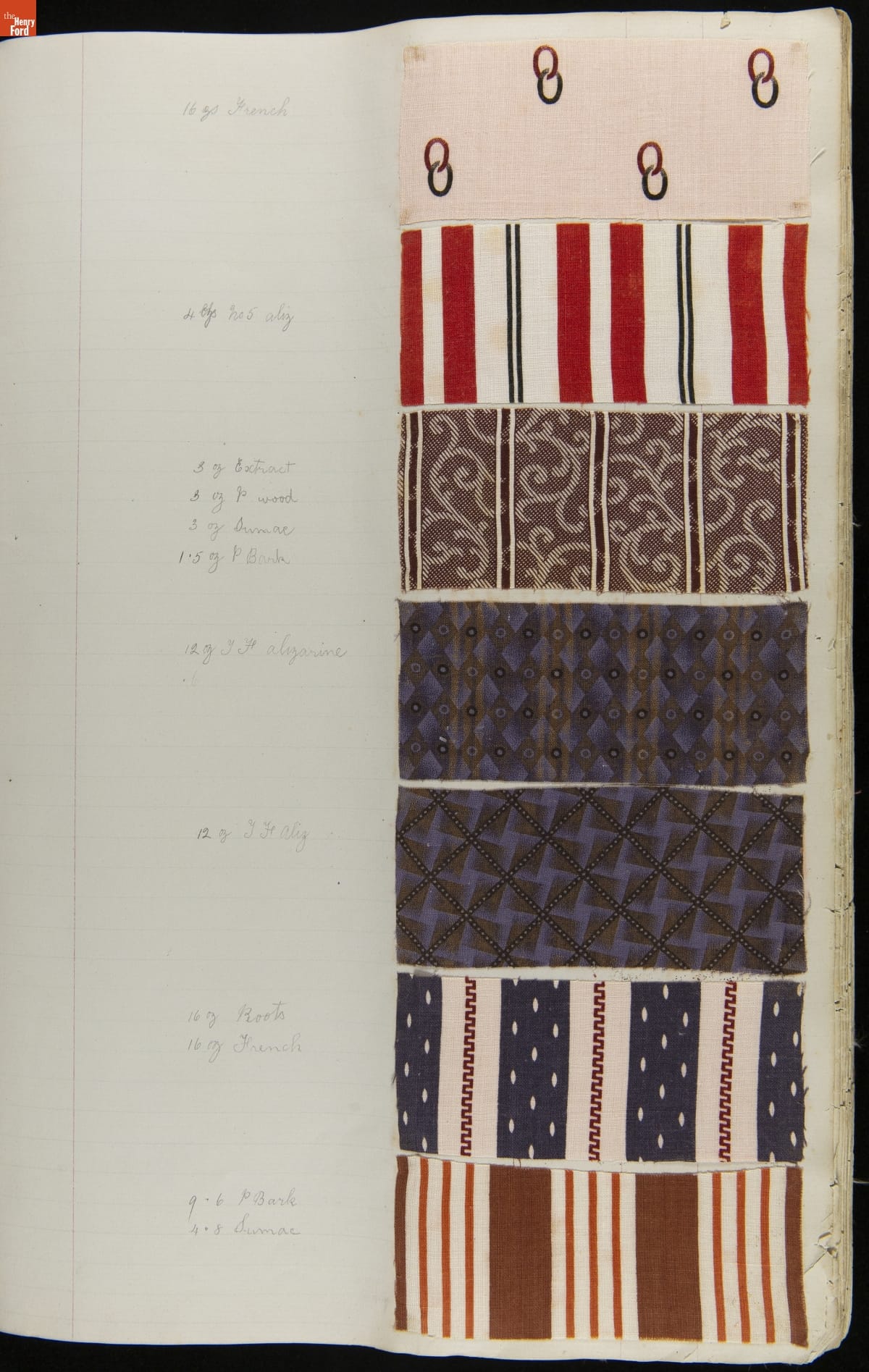 Textile samples notebook created by Washington Anderton for Cocheco Manufacturing Company, Lawrence, Massachusetts.
