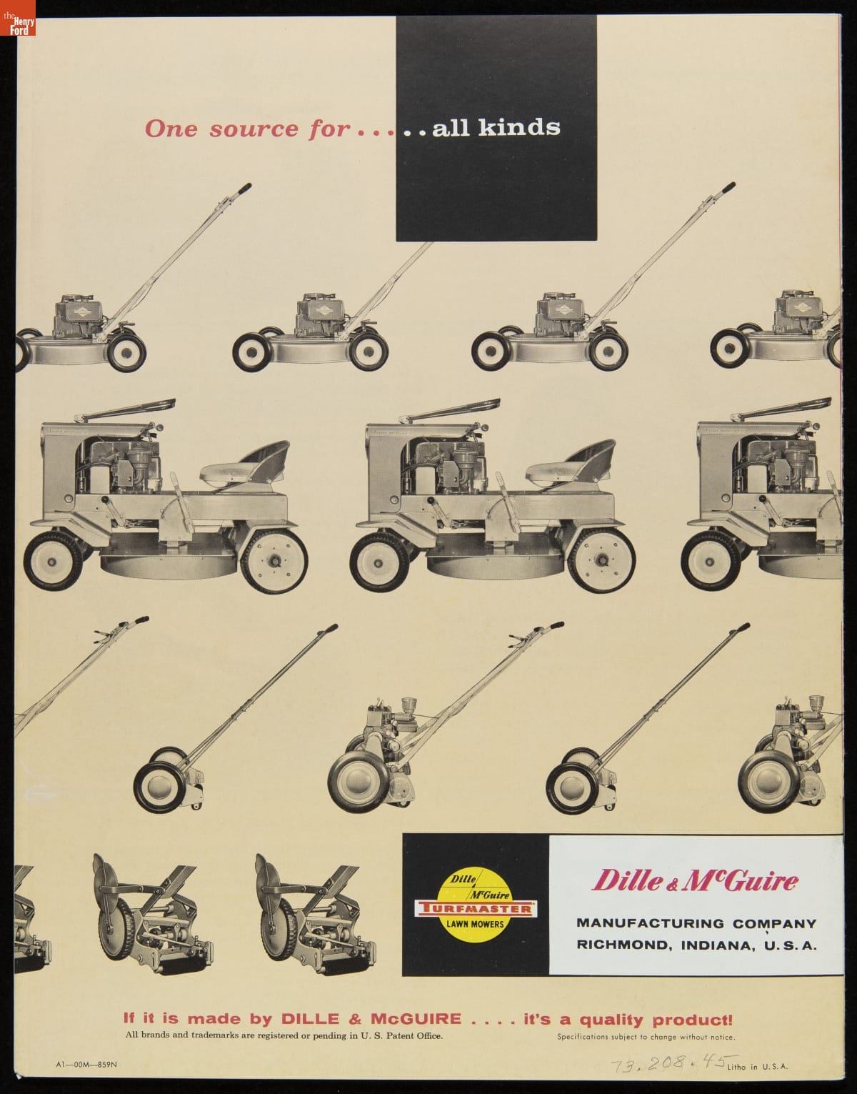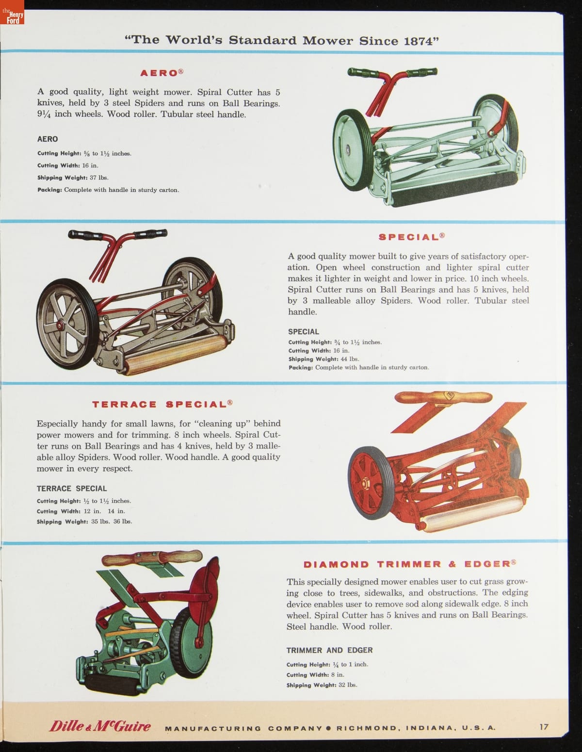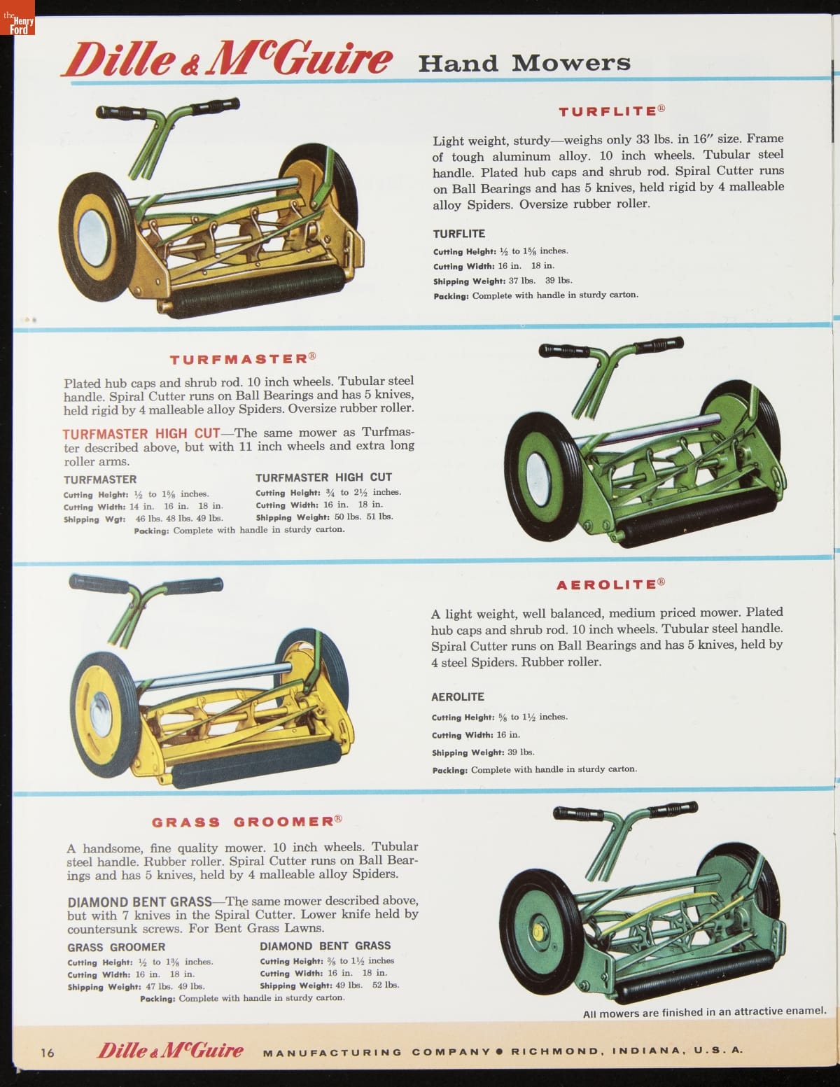 Dille & McGuire Manufacturing Company Catalog, "Turfmaster Lawn Mowers," 1960