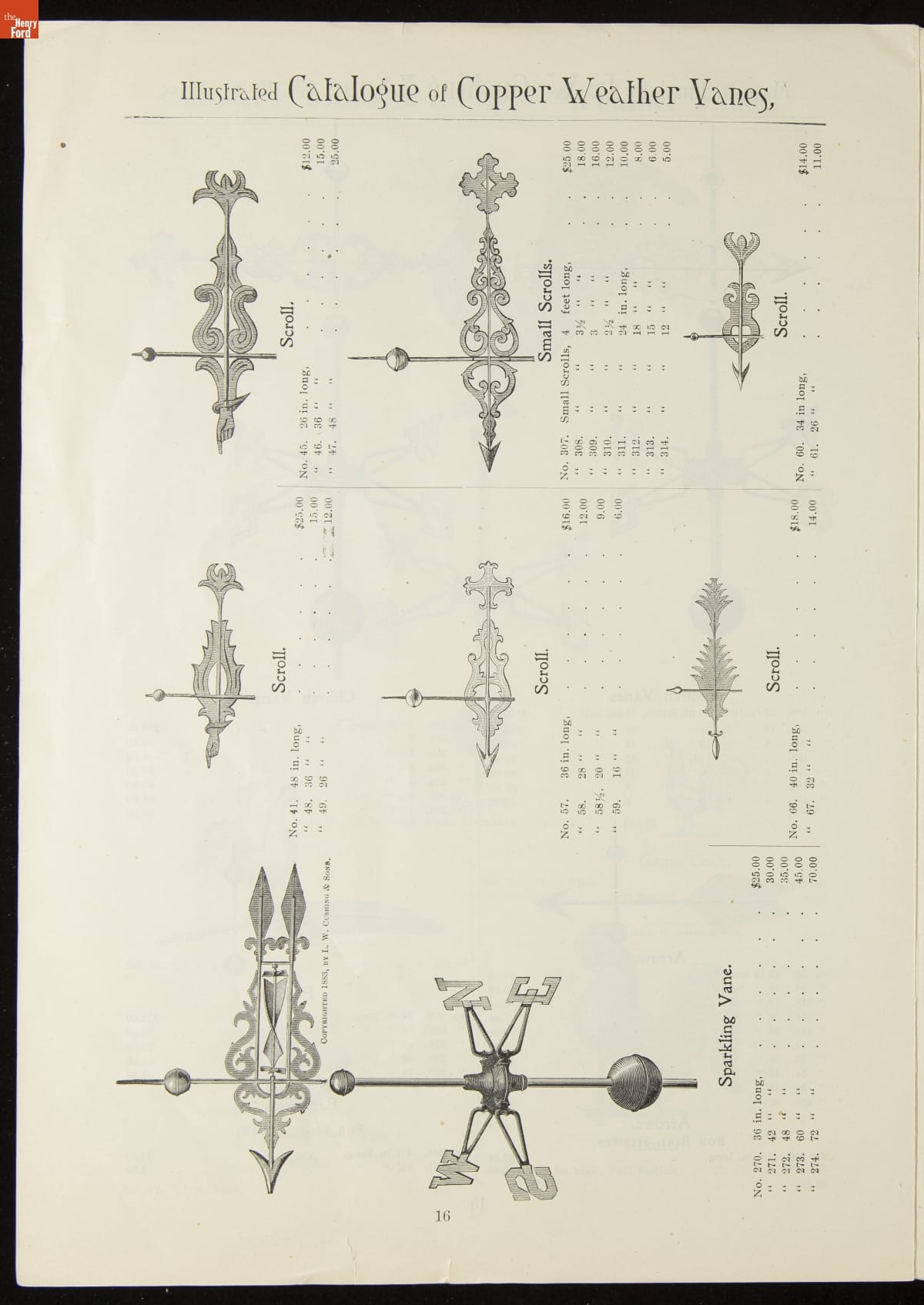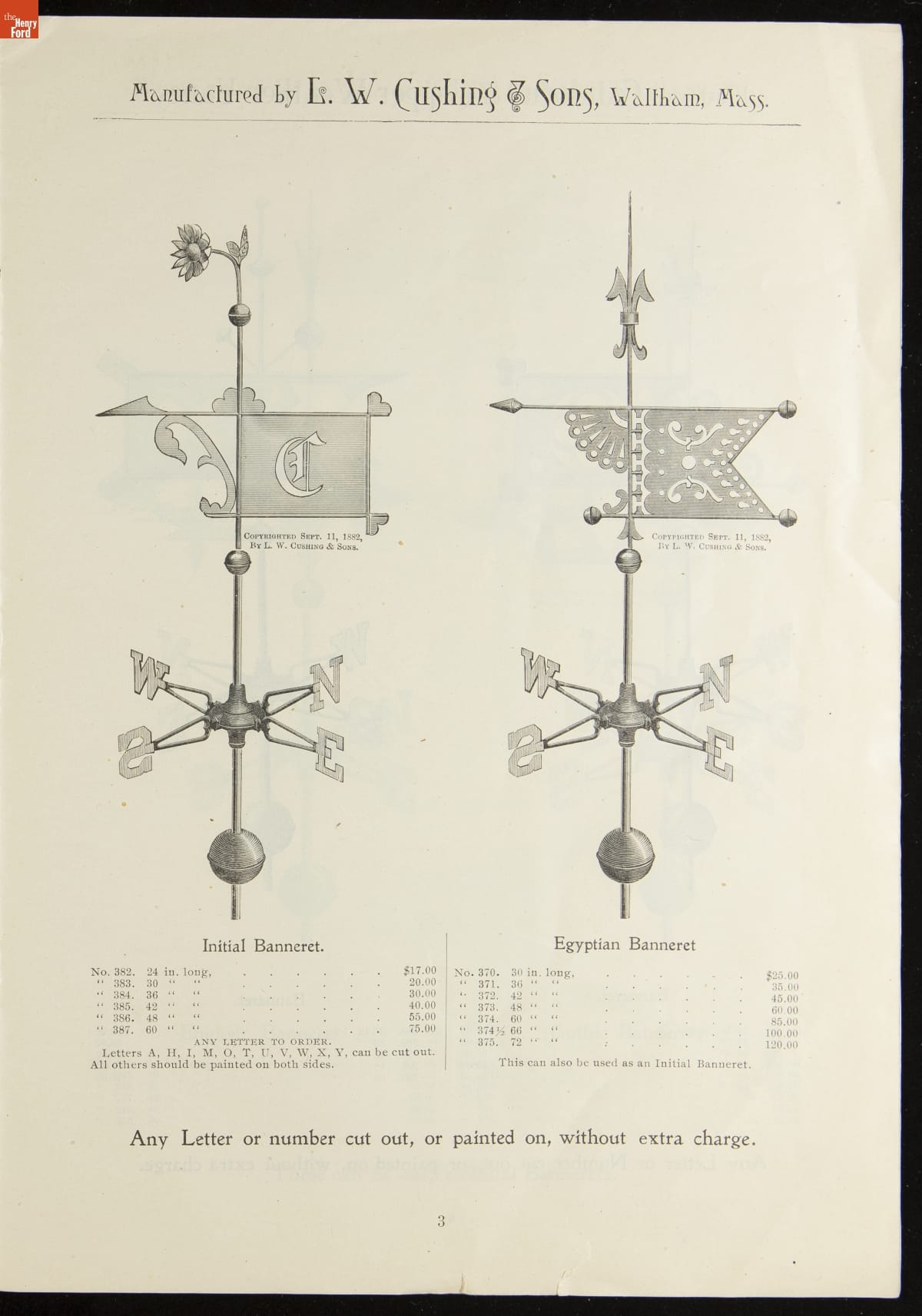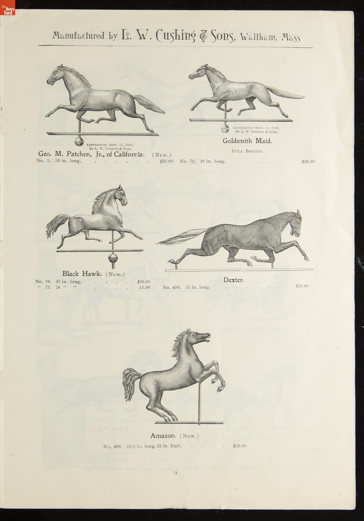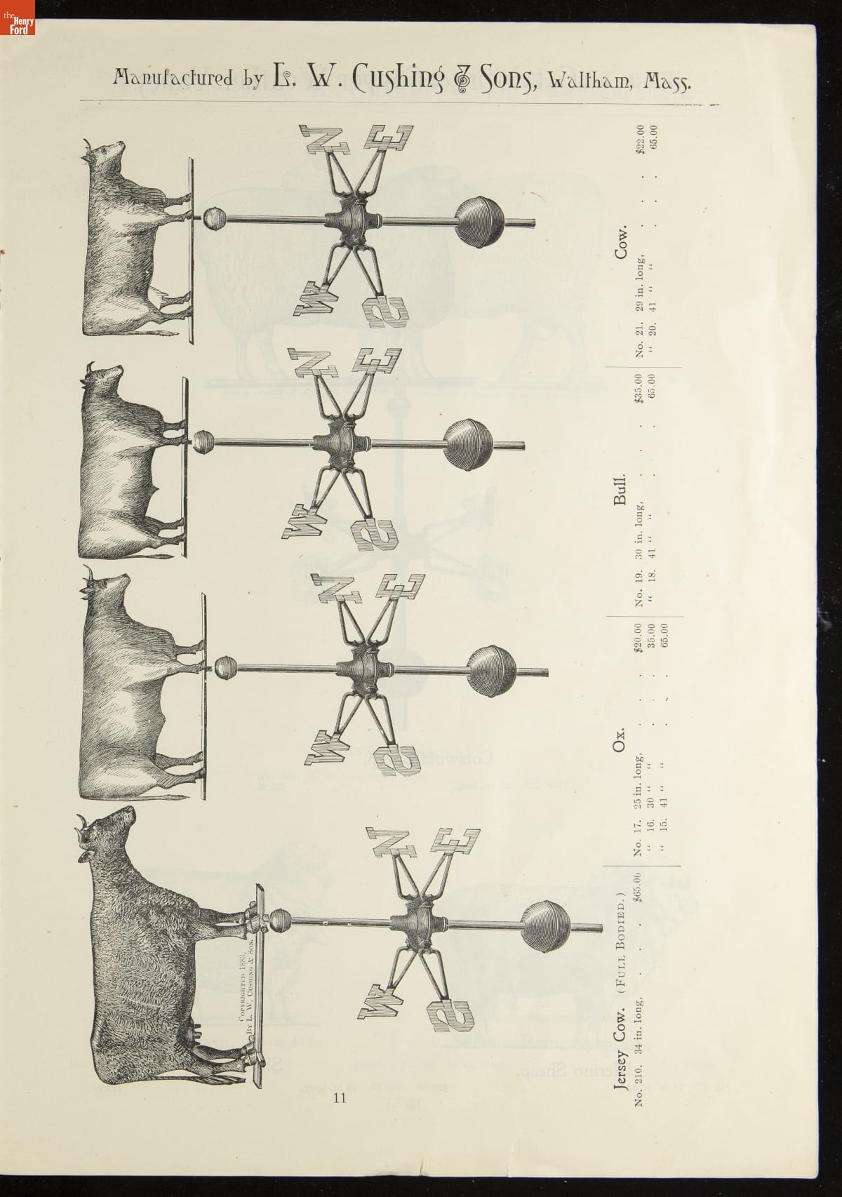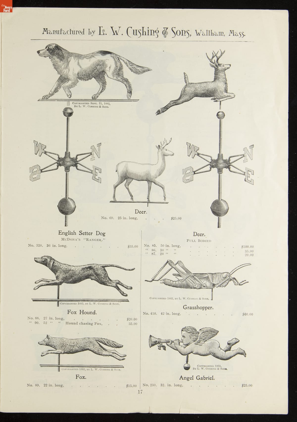 Catalogue of Weather Vanes Manufactured by L.W. Cushing and Sons, 1883