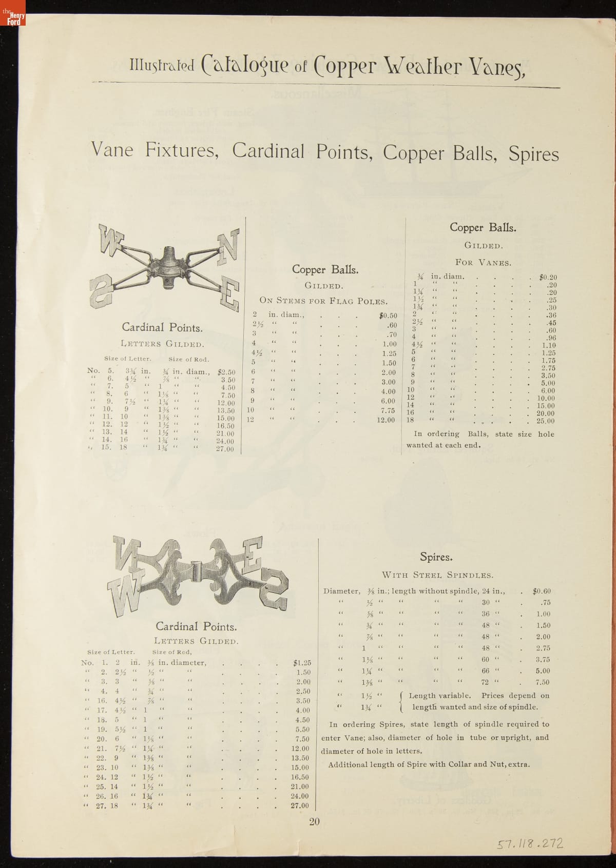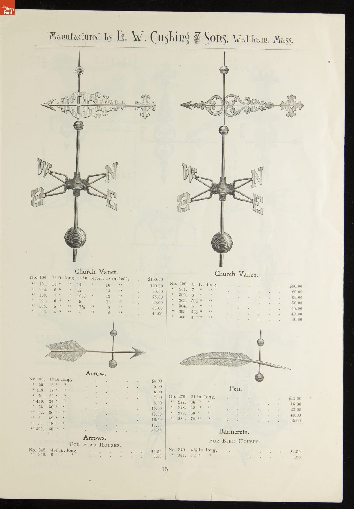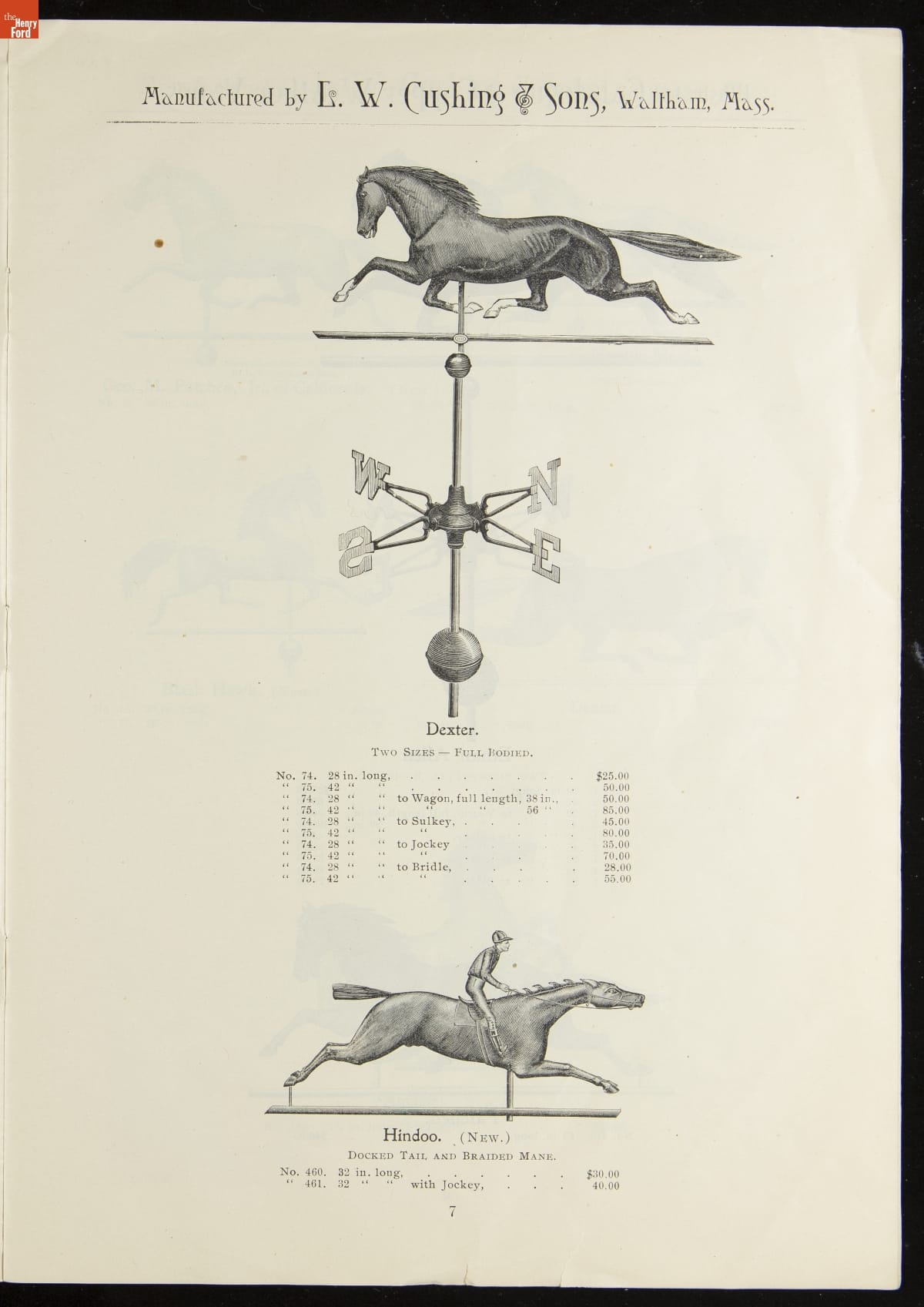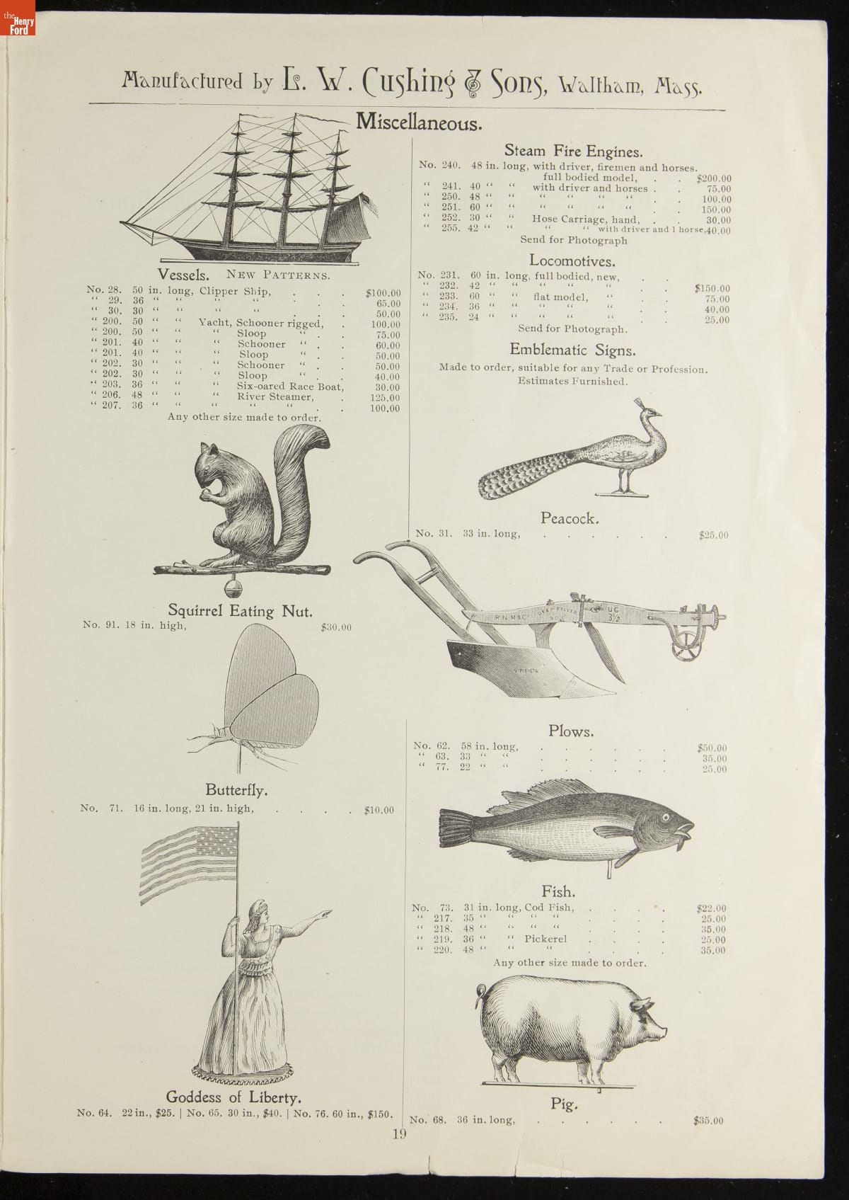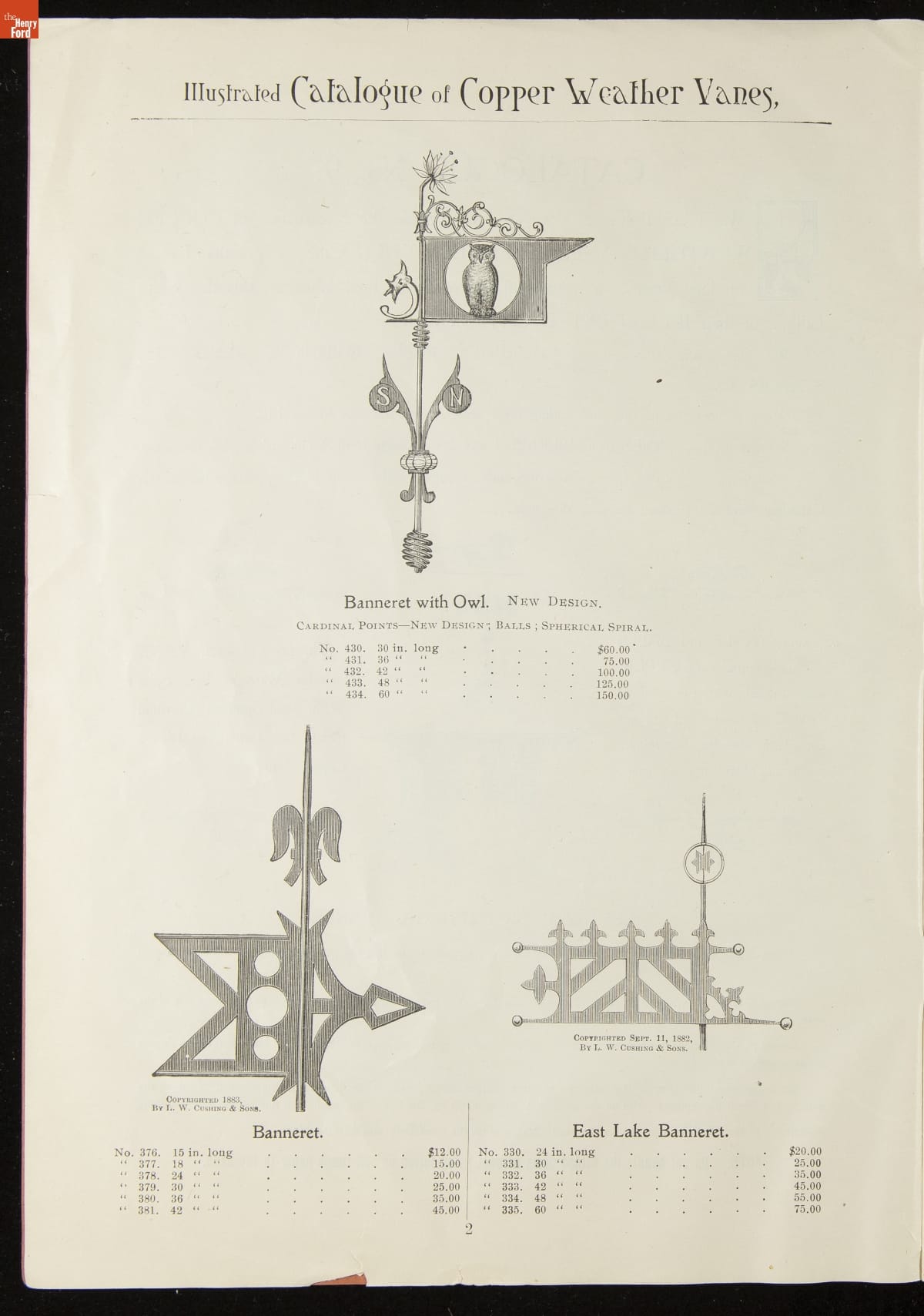 Catalogue of Weather Vanes Manufactured by L.W. Cushing and Sons, 1883