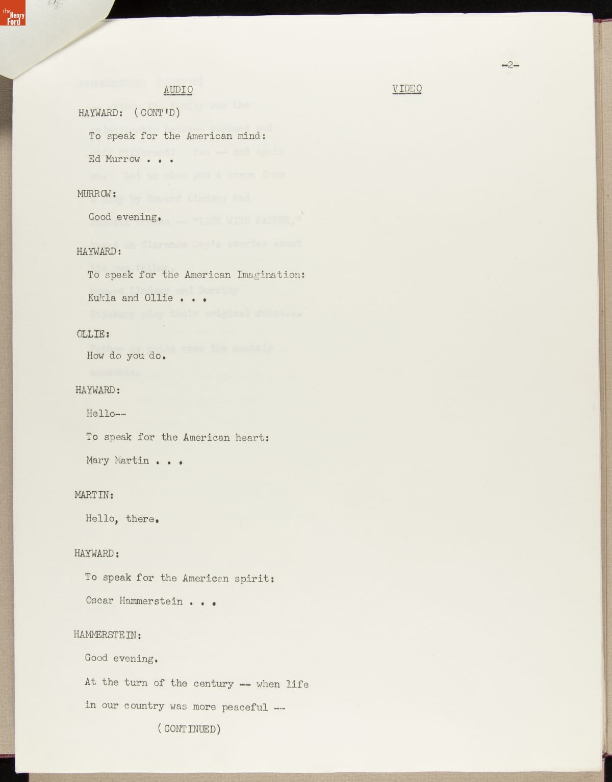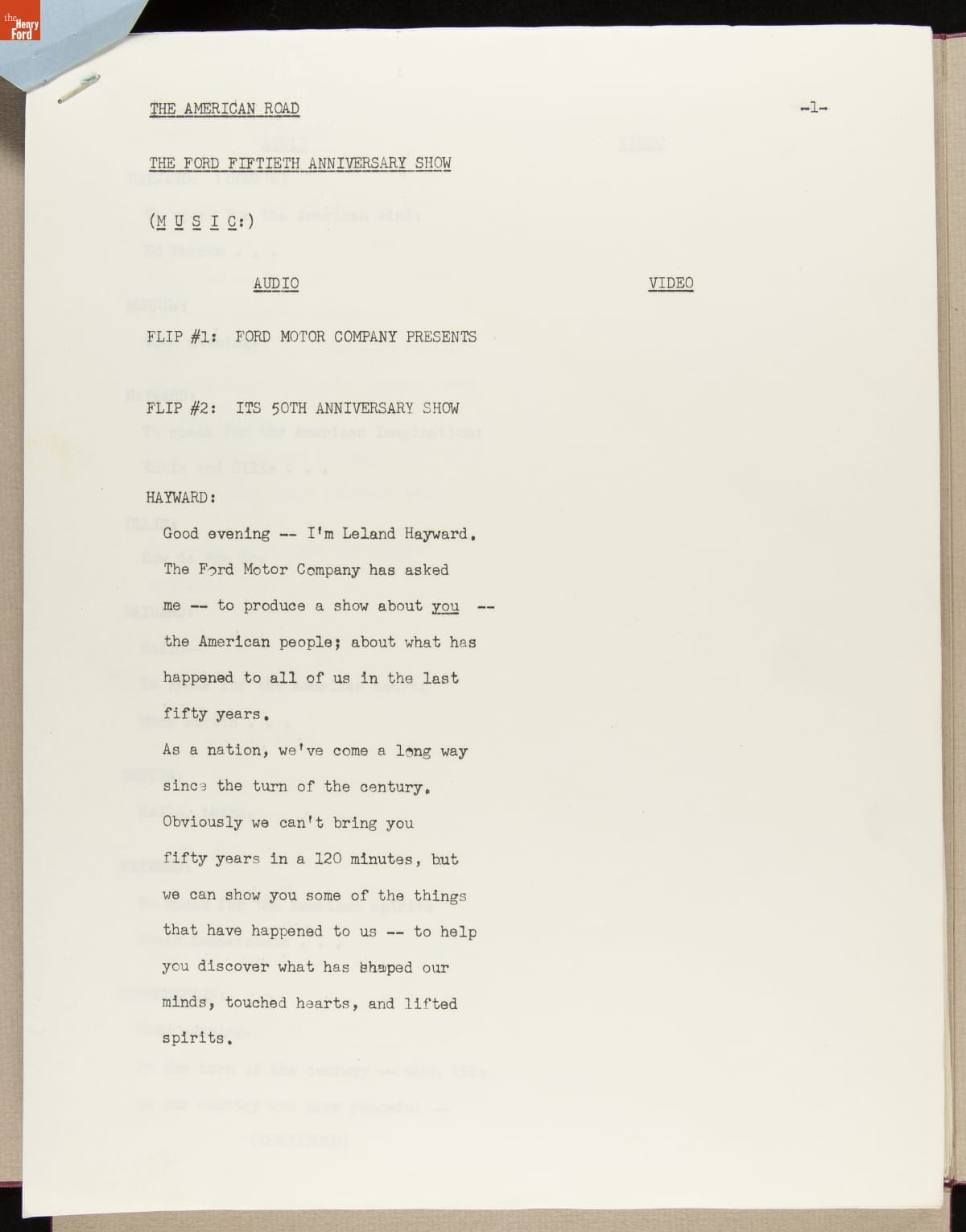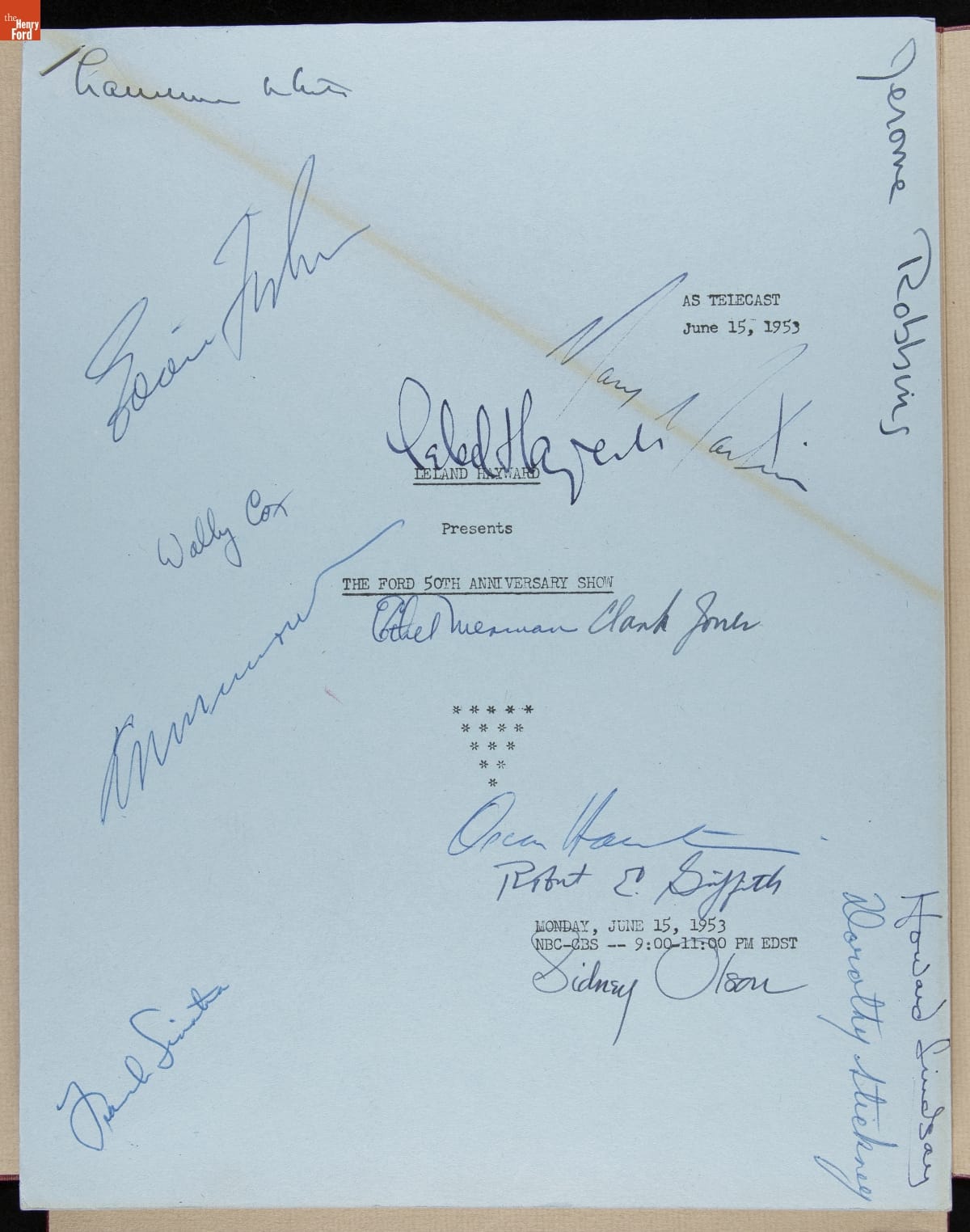 Script for the Ford Motor Company 50th Anniversary TV Show, Broadcast June 15, 1953