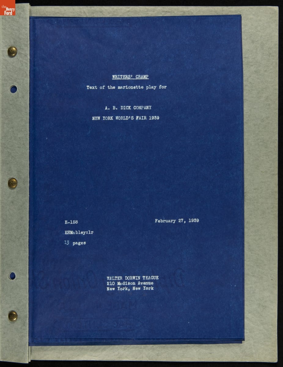 "Writers' Cramp," Text of the Marionette Play for A.B. Dick Company, New York World's Fair 1939, February 27, 1939