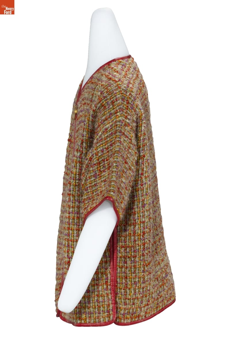The fabric for jacket was made by Bernat Klein. The jacket was designed by Bonnie Cashin and made by Sills & Co.