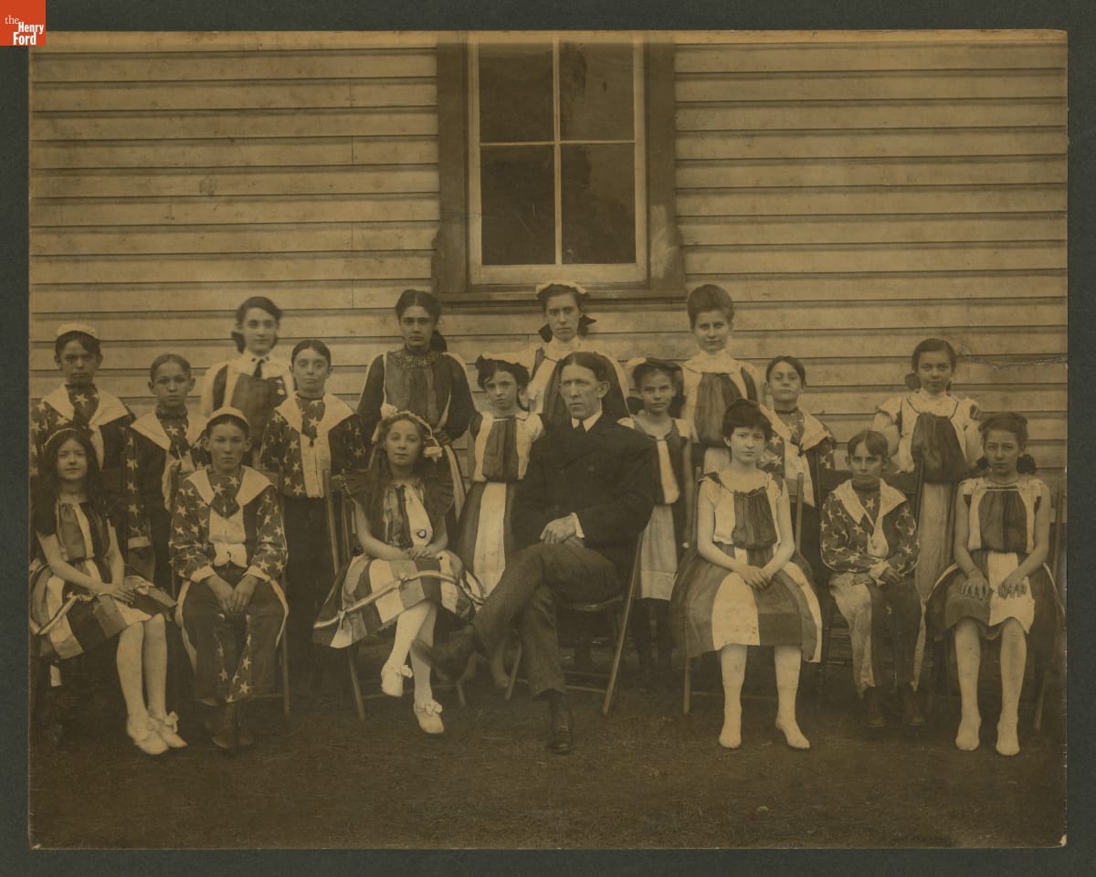Students Dressed in Patriotic Costumes, with Teacher, circa 1905
