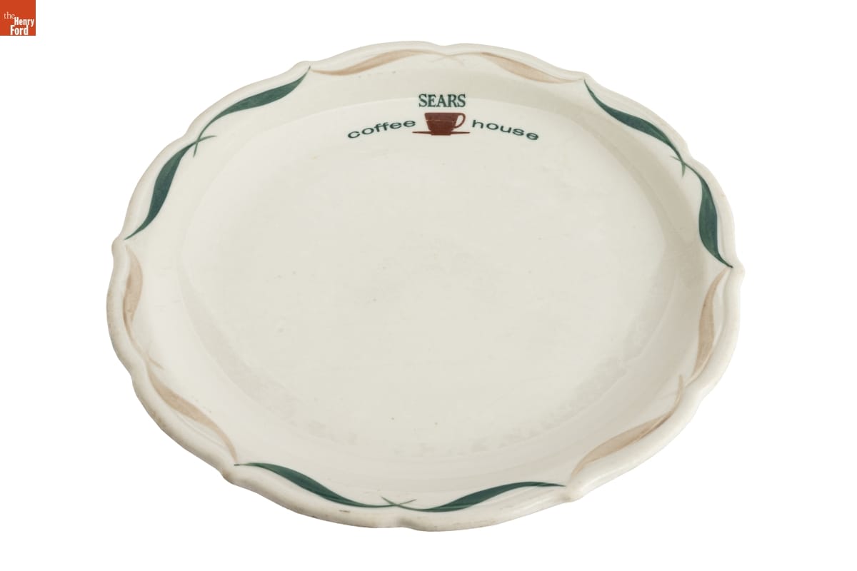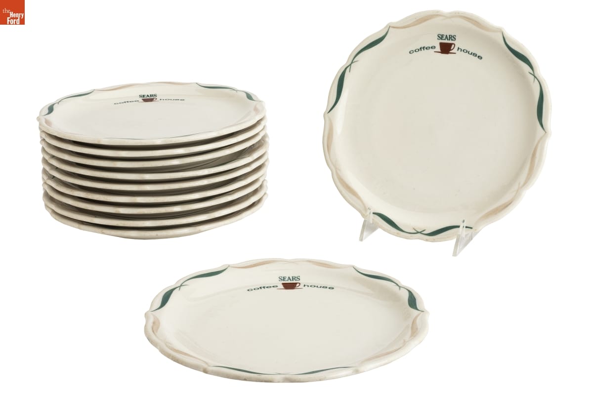 Many Sears department stores during the mid-20th century featured in-store cafeterias. Customers could stop in for a quick cup of coffee and a bite to eat or sit down for a meal after a long day of shopping. Employees served food on durable, vitreous china plates, like these, emblazoned with the Sears Coffee House logo.