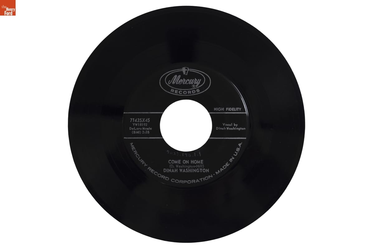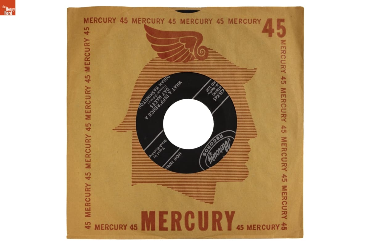 on one side of record: Mercury (R) / RECORDS / HIGH FIDELITY / 71435x45 / YW18190 / E.B. MARKS / (BMI) 2:35 / Vocal by / Dinah Washington / WHAT A DIFF'RENCE A / DAY MAKES / (Grever-Adams) / DINAH WASHINGTON / MERCURY RECORD CORPORATION - MADE IN U.S.A. on one side of record: Mercury (R) / RECORDS / HIGH FIDELITY / 71435x45 / YW18192 / DeLaru Music / (BMI) 2:35 / Vocal by / Dinah Washington / COME ON HOME / (D. Washington - Hill) / DINAH WASHINGTON / MERCURY RECORD CORPORATION - MADE IN U.S.A. on either side of record cover: MERCURY 45 (repeated)