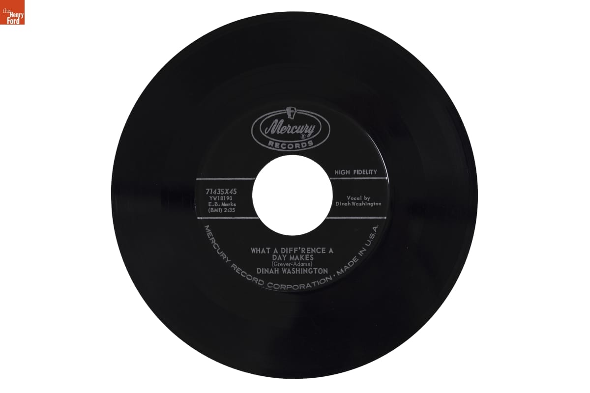 Dinah Washington, one of the most popular Black female vocalists of the 1950s, performed in a range of vocal styles including blues, R&B, and traditional pop music. Washington's 1959 recording of Mexican composer Maria Grever's song "What a Diff'rence a Day Makes" not only earned Washington a Grammy for Best R&B performance that year but made the song one of Grever's longest-lasting hits.
