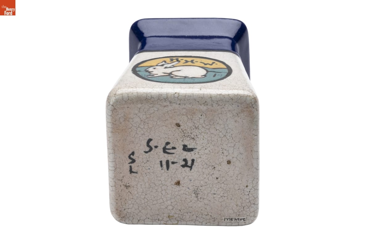Made and decorated by a Saturday Evening Girls member at Paul Revere Pottery in Brighton, Massachusetts.