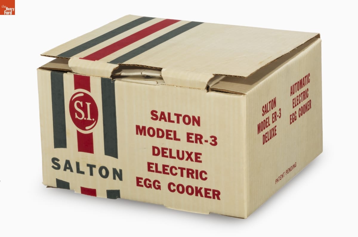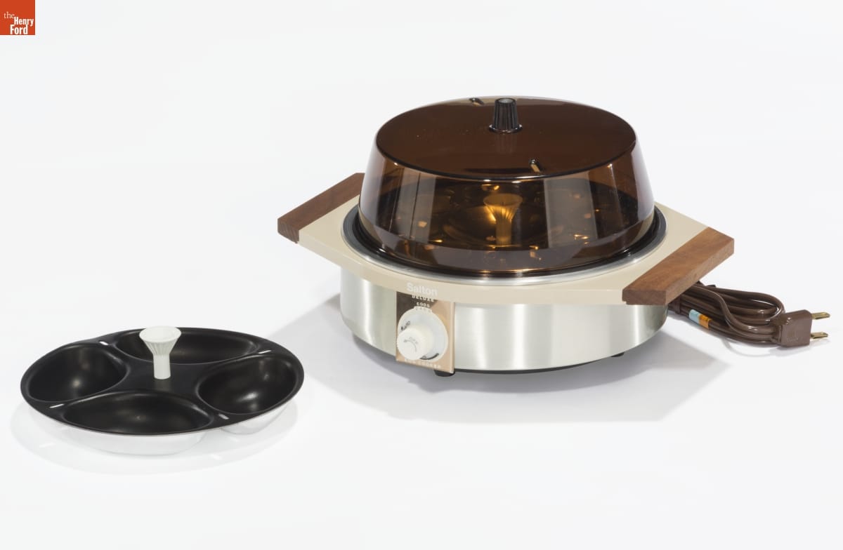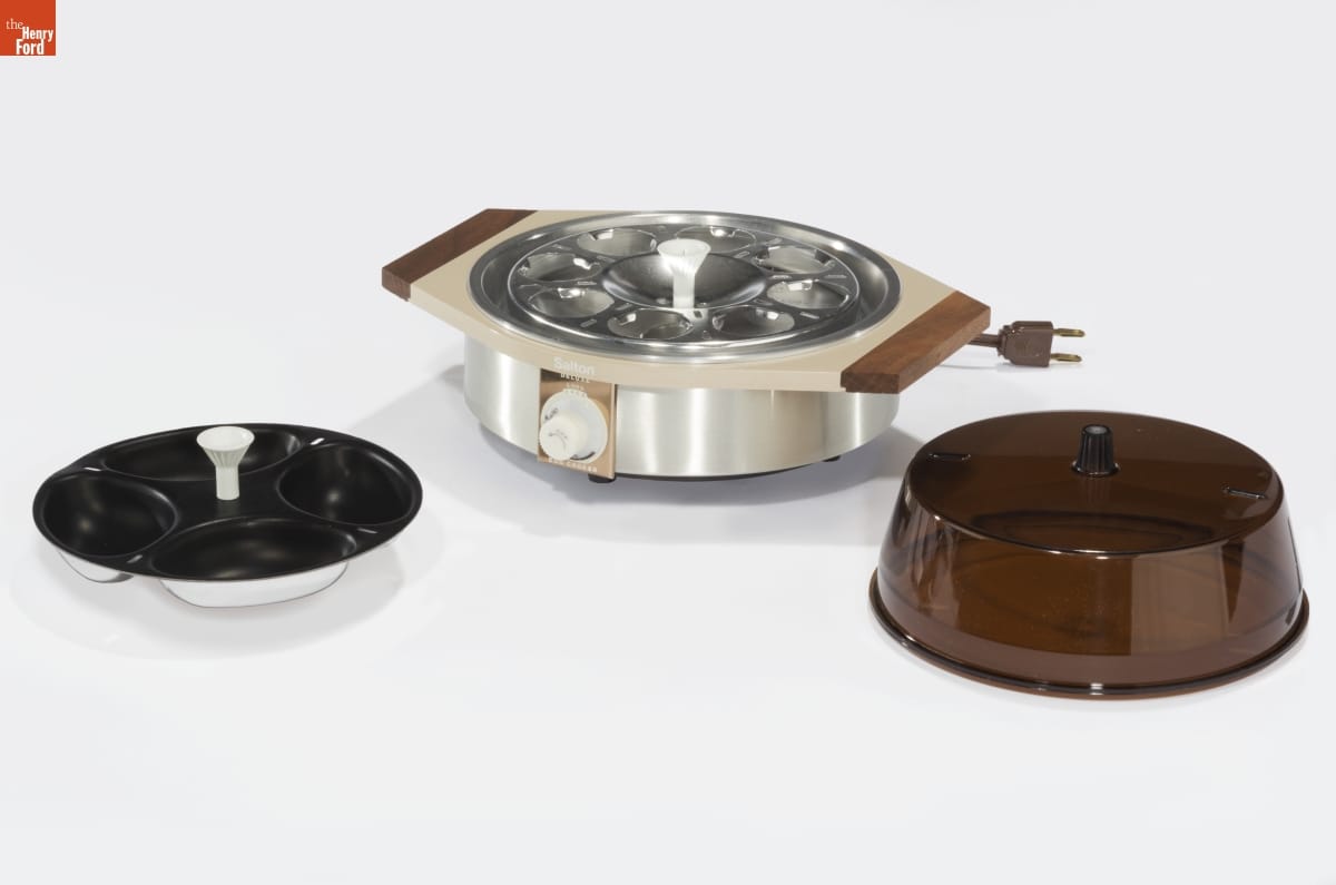 Electric egg cookers offered convenience and consistency--no need to keep an eye on a boiling pot of water on the stove to avoid undercooking or overcooking. Egg cookers also helped yolks stay an appealing yellow, rather than becoming a less appetizing greenish-gray. Designed for style as well as function, the sleek, modern look of this 1970s egg cooker was meant to increase its appeal to consumers.