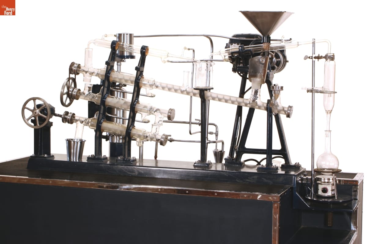 Henry Ford had a vision of farmers being part of the industrial process -- an idea he called "chemurgy." This idea was most completely played out in his experimentation with soybeans, a versatile crop that could be used for industrial products as well as food. This model demonstrates how oil could be extracted from soybeans and converted into many plastic-like products.