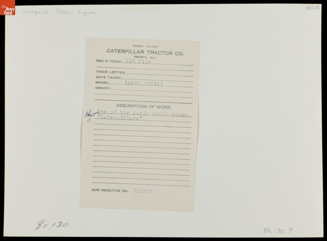 American inventor and entrepreneur Benjamin Holt envisioned a practical mechanical alternative to horse-drawn machinery. He designed a continuous track propulsion system - seen on this early model - for the steam traction engine. Holt's company, driven by these innovative "caterpillar" treads, became an industry leader and eventually evolved into the hugely successful Caterpillar manufacturing corporation.