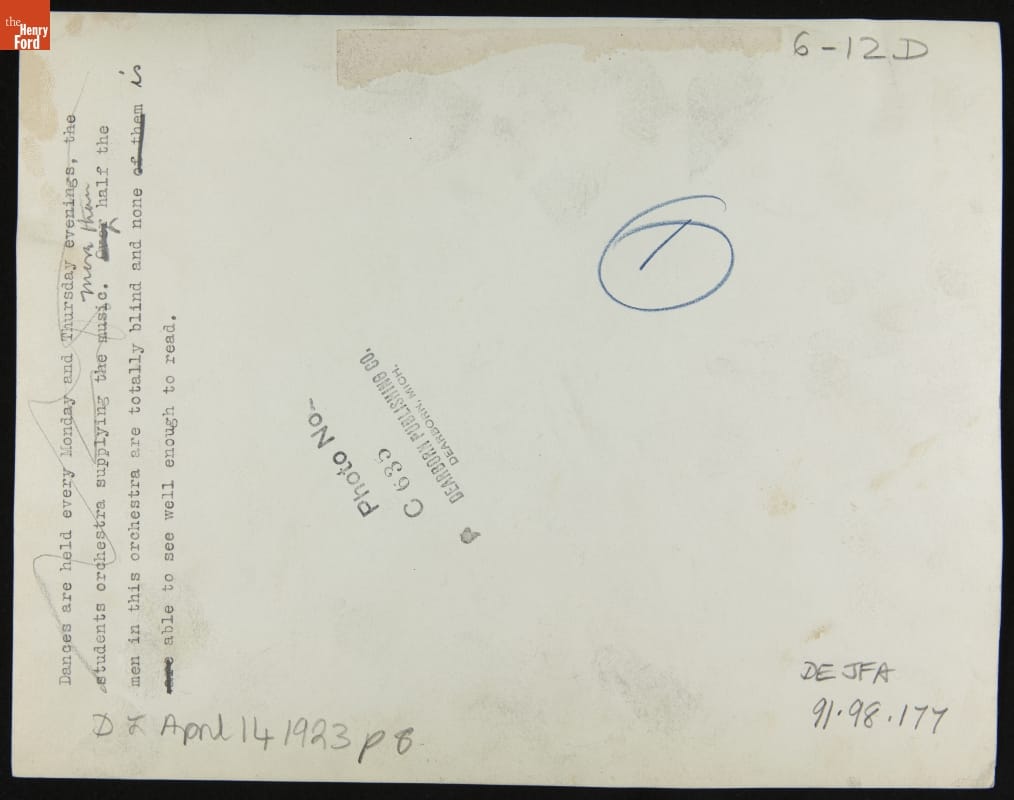 Orchestra of Blind Veterans Playing at Weekly Dance, Dearborn Independent, April 1923