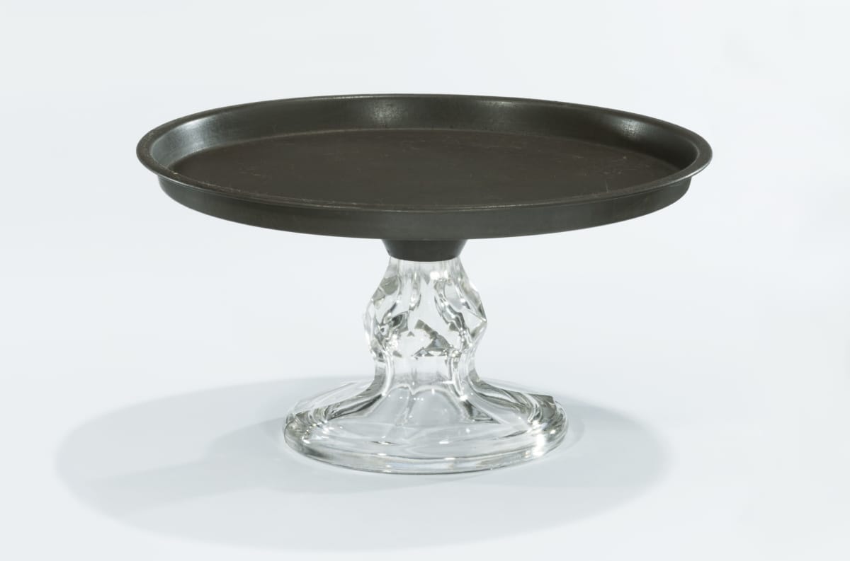 Traditional make-dos are useful and precious objects that broke during their working lives. Their owners felt compelled to restore or repurpose these objects in a variety of ways. Originally this diamond-faceted base likely supported a glass cake plate but was later replaced with a tin plate for use in a middle-class dining room.